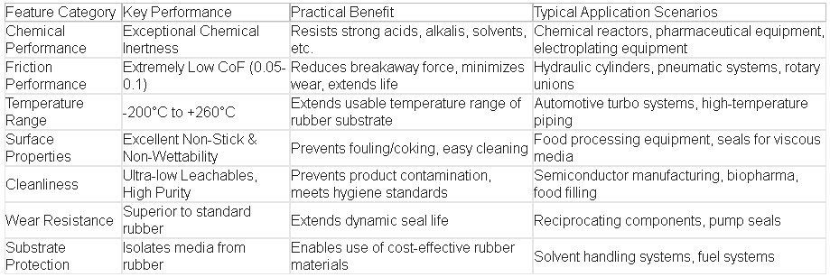 The table below summarizes the key characteristics and applications of PTFE-coated O-rings: